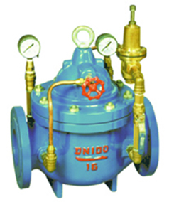 作用与用途:调节与控制主阀的出口压力,主阀出口压力不因进 口压力变化而改变,亦不因主阀出口流量的变化而改变其出口压 力。可用于生活给水、消防系统及工业给水系统。 压力等级:PN10、PN16、PN2、DN40-600